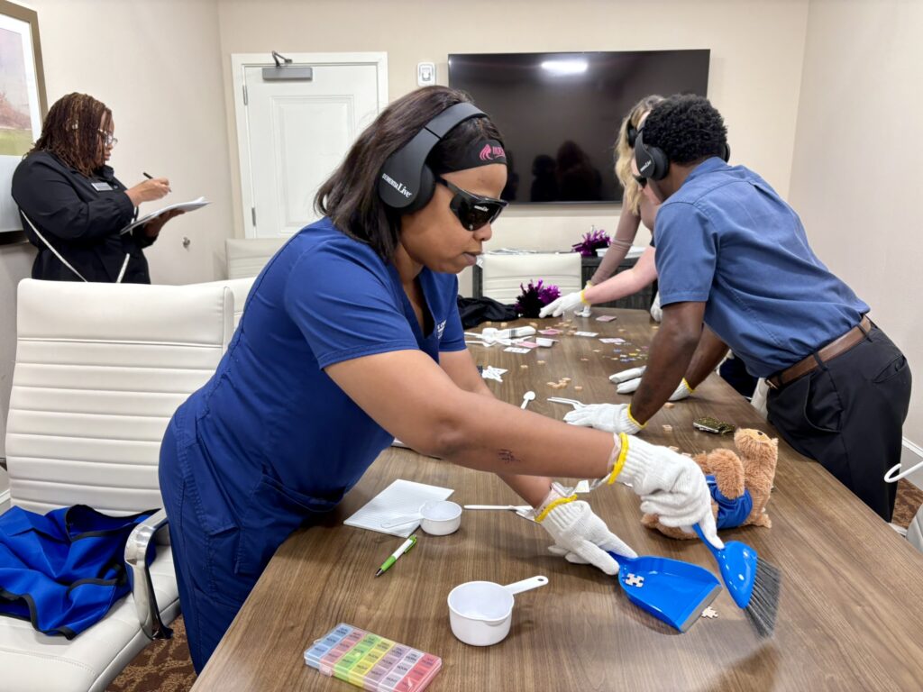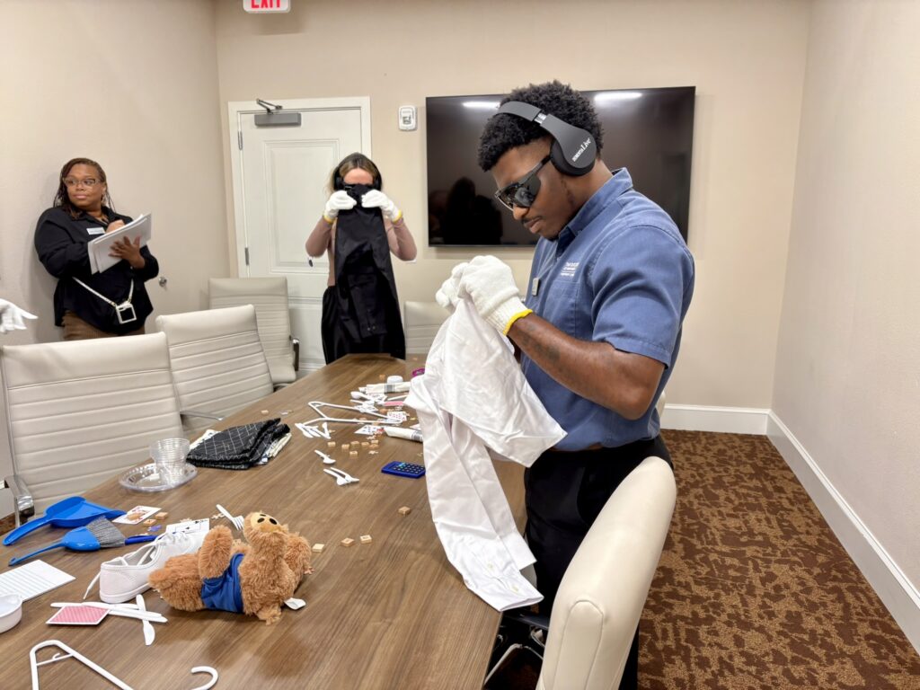 Every OAW teammate is trained in DementiaLive®, a unique program designed to recreate what it feels like to live with dementia. This experience provides insight into the challenges faced by individuals living with the disease and mimics dementia symptoms such as tunnel vision, slowed processing and altered touch. All Outlook at Windhaven teammates are required to complete this training as part of their commitment to compassionate and informed care.