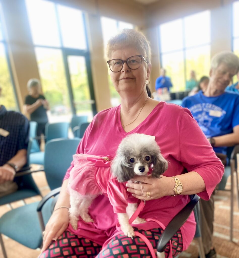 The tail-wagging festivities kicked off with a morning pet parade and walk around the community that ended in The Courtyard where OAW’s Director of Spiritual Life, Shane Barnes, blessed all the beloved pets. Later in the day, the stage was set for a talent and fashion show and ice cream social. Residents and their pups strutted their stuff or performed tricks to delight the audience.