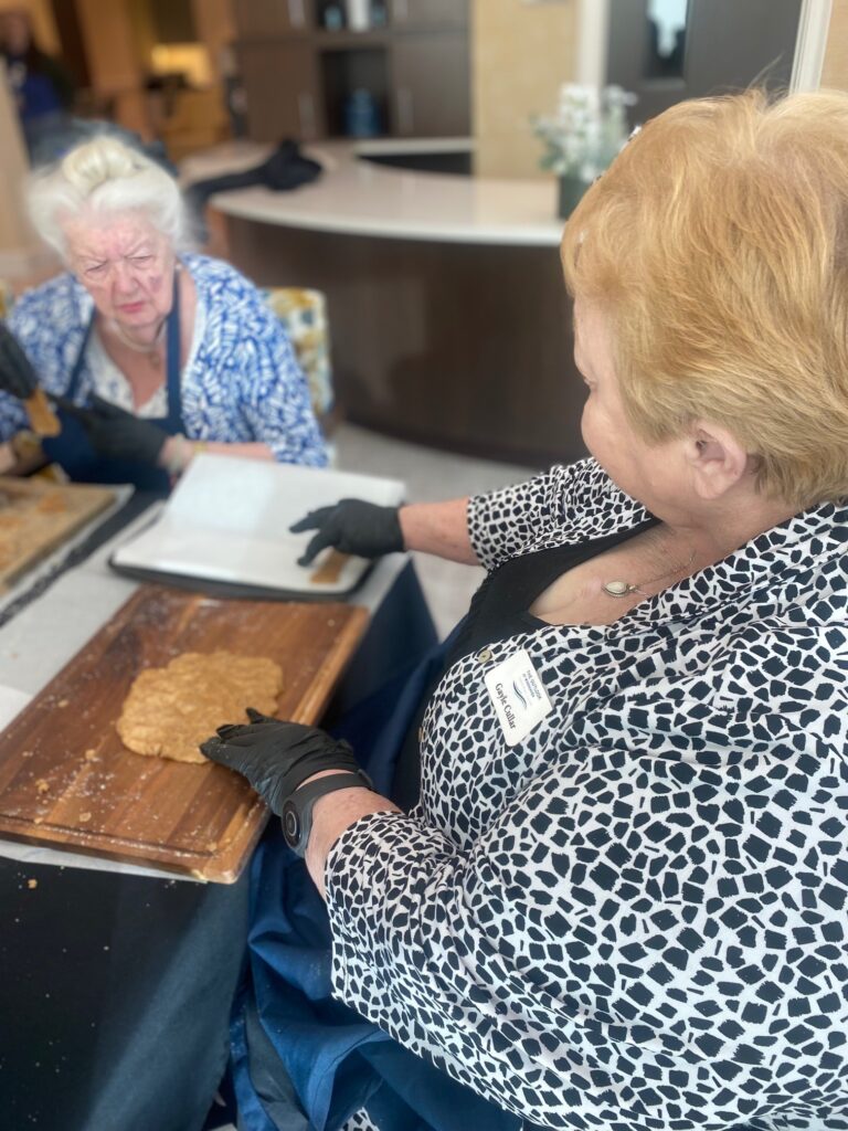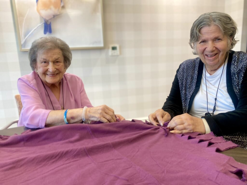Residents at The Outlook at Windhaven (OAW), are warming hearts and paws this holiday season. Every other Friday morning, a group of Assisted Living residents, along with a few OAW teammates, gather for “Cozy Creations,” a crafting session where they make no-sew fleece blankets for furry friends at the Plano Animal Shelter.