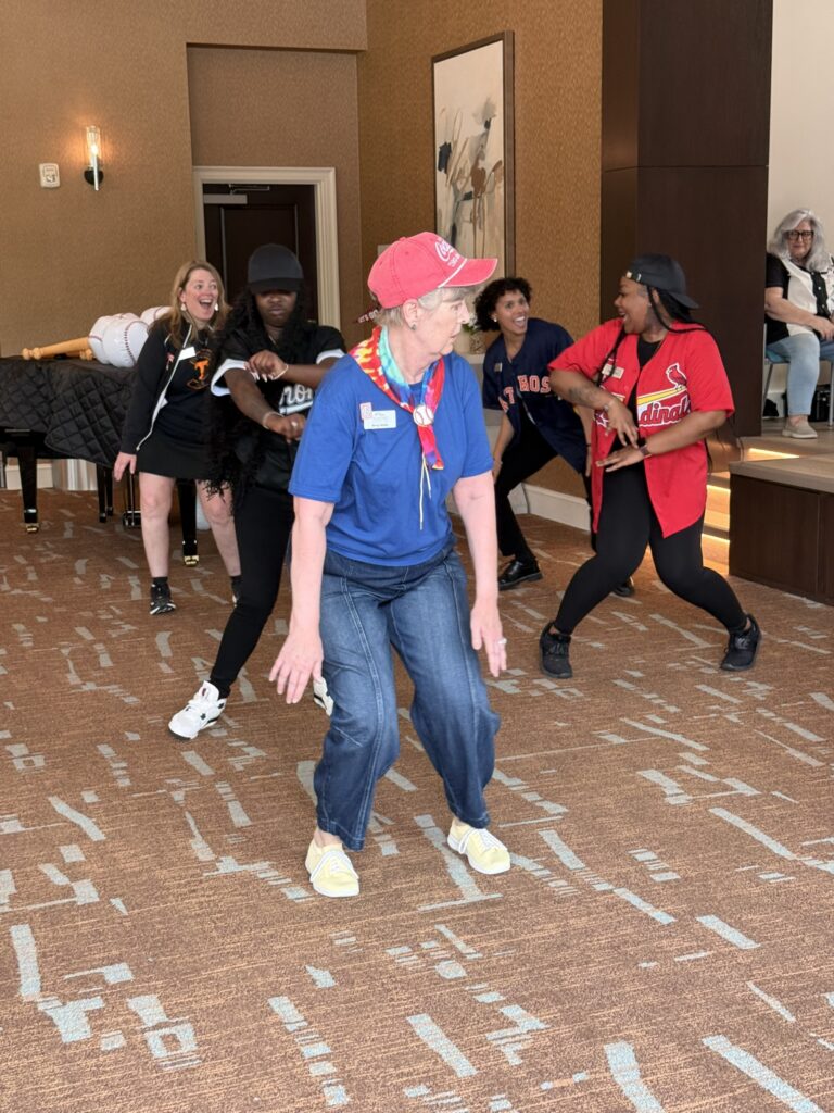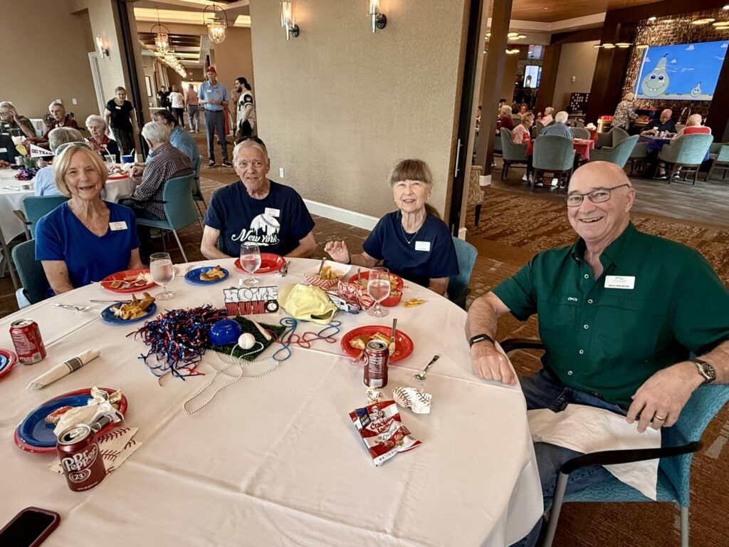 The community’s outdoor space was set up with classic tailgate-style games for all to enjoy including cornhole, horseshoes, giant Jenga, a baseball toss challenge and oversized Connect Four. This provided guests with plenty of options for friendly competition and a few home runs. Adding to the fun, DJ Tom the Music Man kept the atmosphere upbeat with music that had attendees on their feet, rooting for the home team and dancing from the first to last inning.